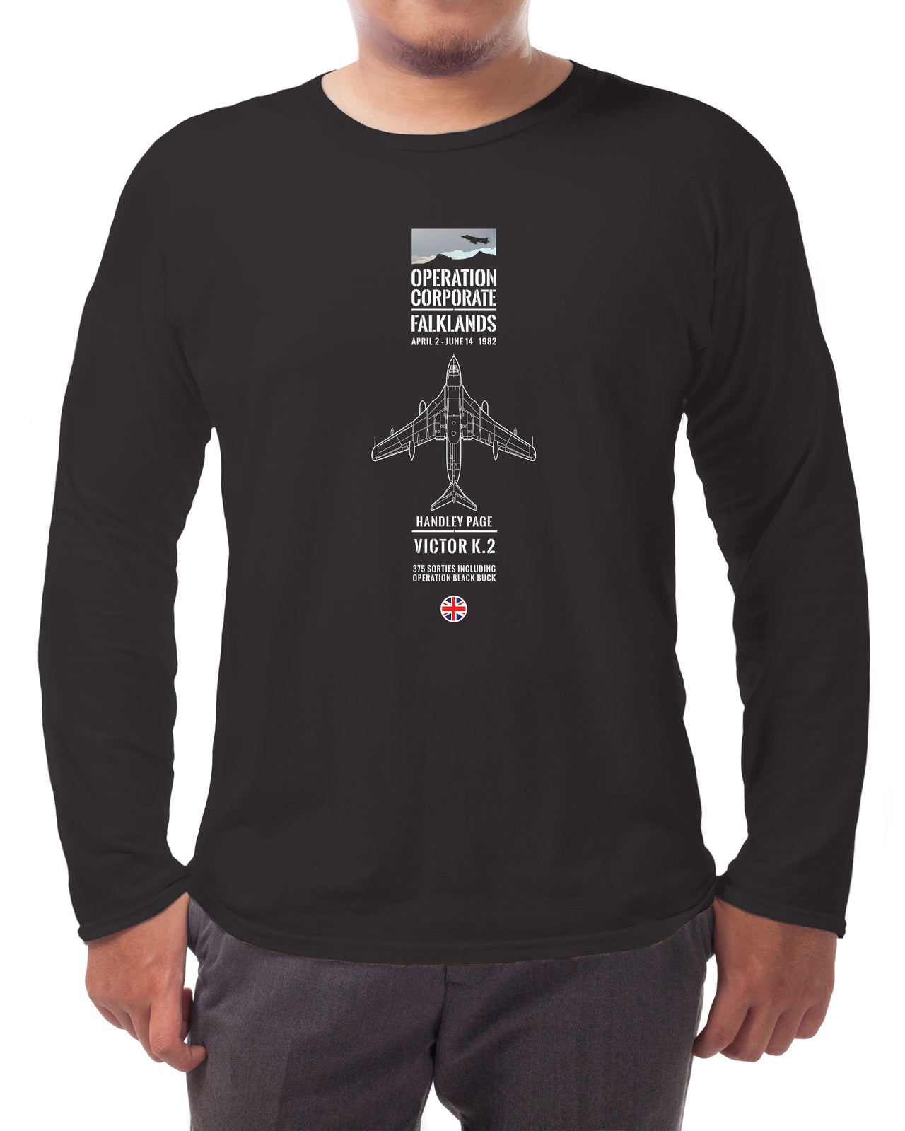 To mark 40 years since the end of hostilities in the Falkland Islands this collection depicts 16 aircraft that took part in Operation Corporate. Many types were involved, from logistical tasks to ground attack. The Victor flew 375 sorties in the tanker role including during Operation Black Buck